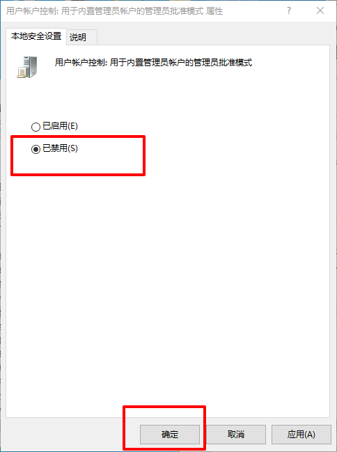 3、然后,在右侧找到并双击【用户账户控制:用于内置管理员账户的管理员批准模式】,将其设置为【禁用】即可