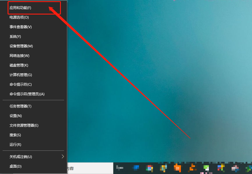 4、之后,再次同时按下【Win+X】,点击【应用和功能】;