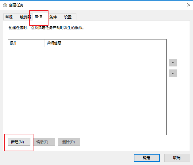 6、随后,切换到“操作”选项卡,点击下方的“新建”按钮;