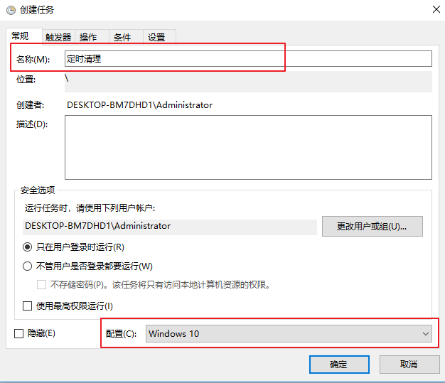 3、在创建页面中,输入任务名称,并在最下方的“配置”下拉菜单中,选择“Windows10”;