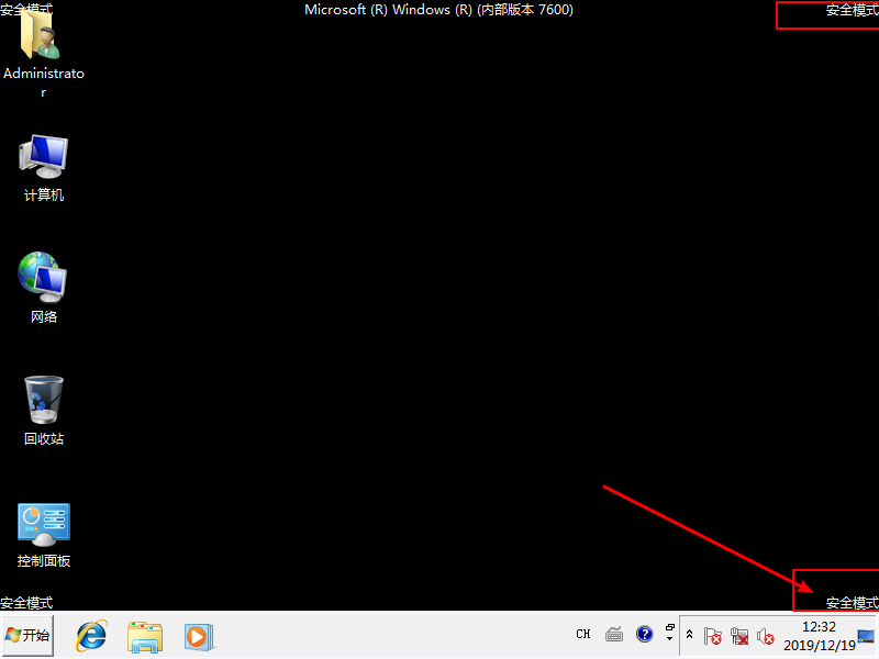 Ps:为了区分正常桌面和安全模式桌面,电脑桌面的四个角落都会有安全模式的字样