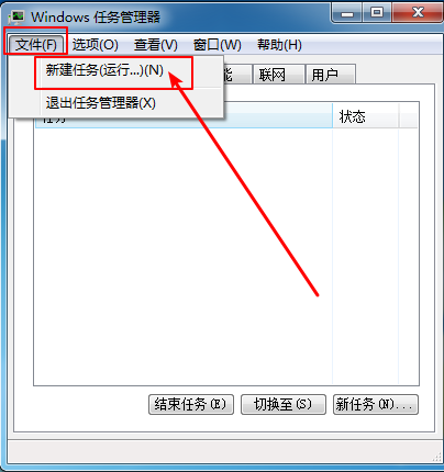 2、随后,你会进入任务管理器窗口,点击 “文件”按钮,点击“新建任务”