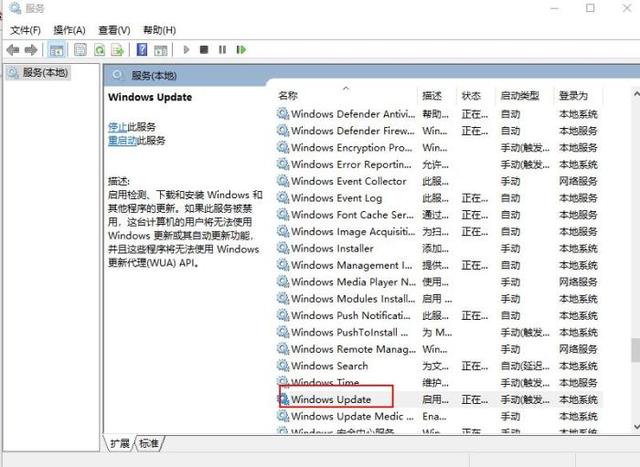 - 在选项中找到“Windows Update”选项,右键快捷菜单单击“停止”则可以 关闭系统自动更新。