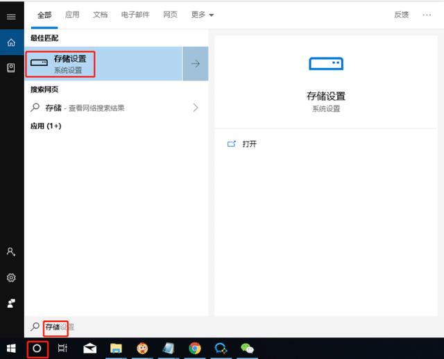 - 在win搜索框中搜索“存储”,打开“存储设置”。
