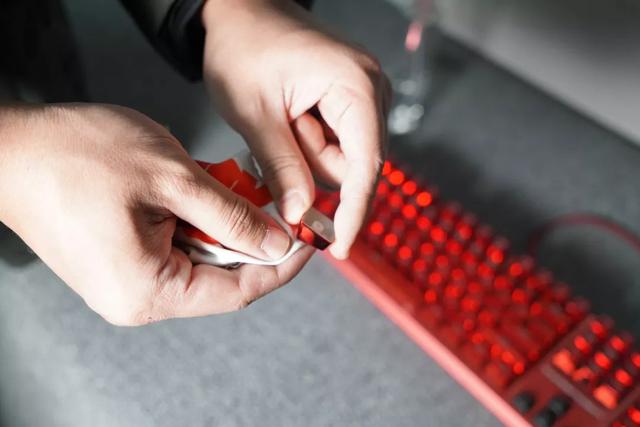 将键帽清洗干净晾干水分,也用酒精擦拭一下,再原样复原就可以了。