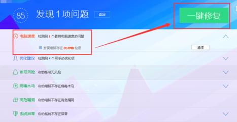 2、扫描到垃圾,点击“一键修复”