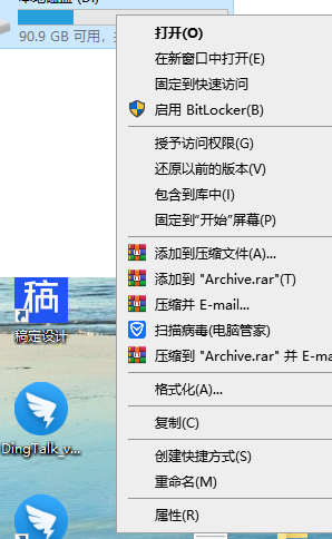 1、在你需要清理的磁盘上鼠标右键点击,选择“属性”。