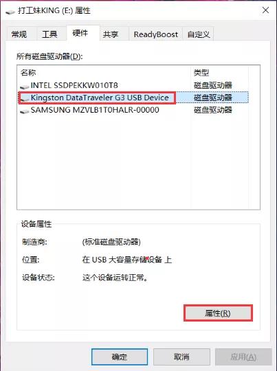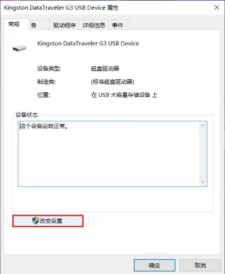 U盘“策略”设置可右击U盘所在盘符选择【属性】,依次点击U盘【属性】【常规】【改变设置】进入)。