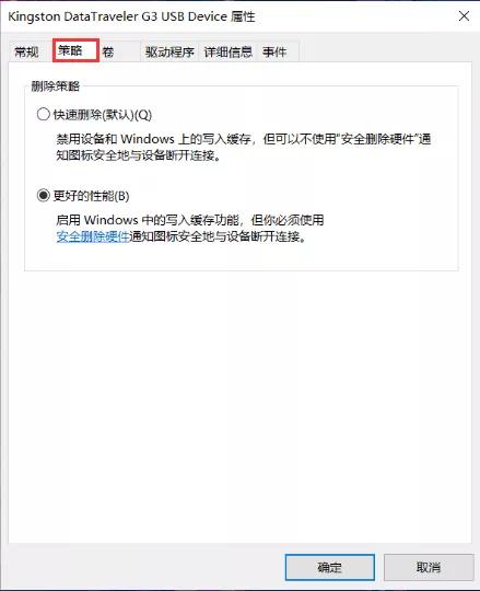 如果U盘“策略”设置在【快速删除】(Win10 1809及之后的版本都默认设置在【快速删除】),只需等待文件传输完毕后即可直接拔出U盘。