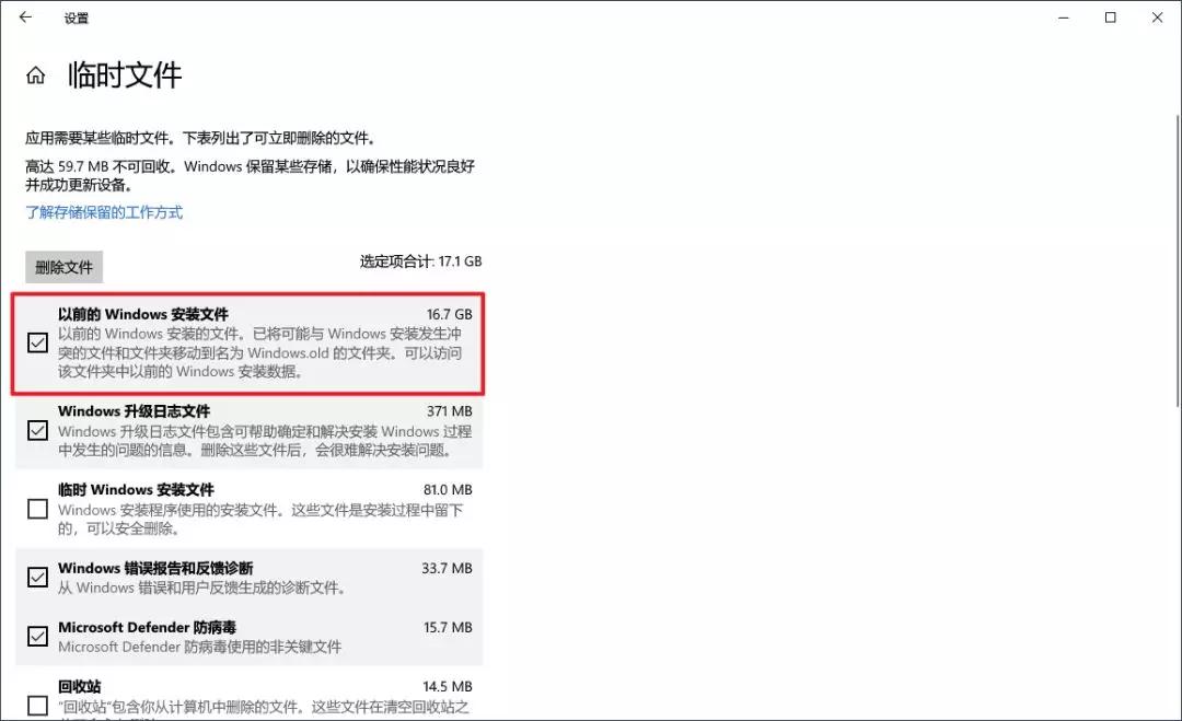 一般看临时文件,除了会磁盘清理器中的项目外增加了很多内容,比如更新系统产生的还原文件,错误诊断等。