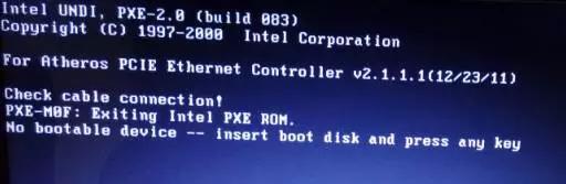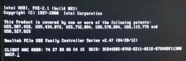 这个实际上并没有报错误信息,而是跳到网卡启动了,不太懂英文的注意几个关键词:CLIENT MAC ADDR,这种情况是电脑没有检测到启动设备,然后跳到最后的网卡启动了,除了无盘工作站是这种启动方式外,大部分电脑都是硬盘启动的,所以这种情况多半是硬盘识别不到了。