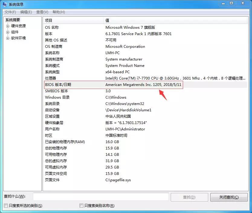 按键盘上的Win+R键,输入“msinfo32”回车,可以看到BIOS版本。