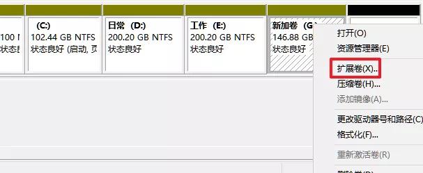 对于未分配的空间,也可以右击选择【扩展卷】并按提示操作进行合并。