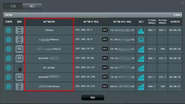 这个时候可以打开电脑,在浏览器页面输入路由器的网址(华硕路由一般为192.168.50.1或router.asus.com,其它路由器可能为“192.168.1.1”、“192.168.0.1”等),输入用户名和密码,在操作界面点击查看用户列表就能看到所有连在路由器上的设备,如果有不认识的设备,就是被蹭网了。