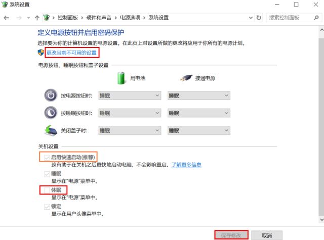 若不需要启用此功能,可在上述【电源选项】界面中取消勾选【启用快速启动】。