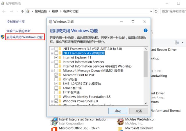 右击开始菜单,依次点击【设置】【应用】【程序和功能】,点击左侧【启用或关闭Windows功能】,勾选需要使用的功能并【确定】,按提示联网、下载文件,完成后重启。