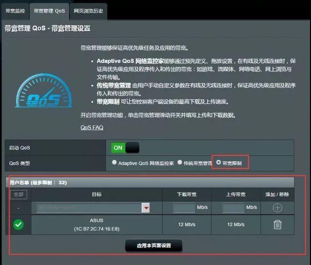 可以通过路由器的带宽限制来合理分配资源,以带有QoS(Quality of Service)带宽优化功能的华硕路由器为例,可以在路由器【Adaptive QoS网络监控家】【带宽管理QoS】中【启动QoS】。